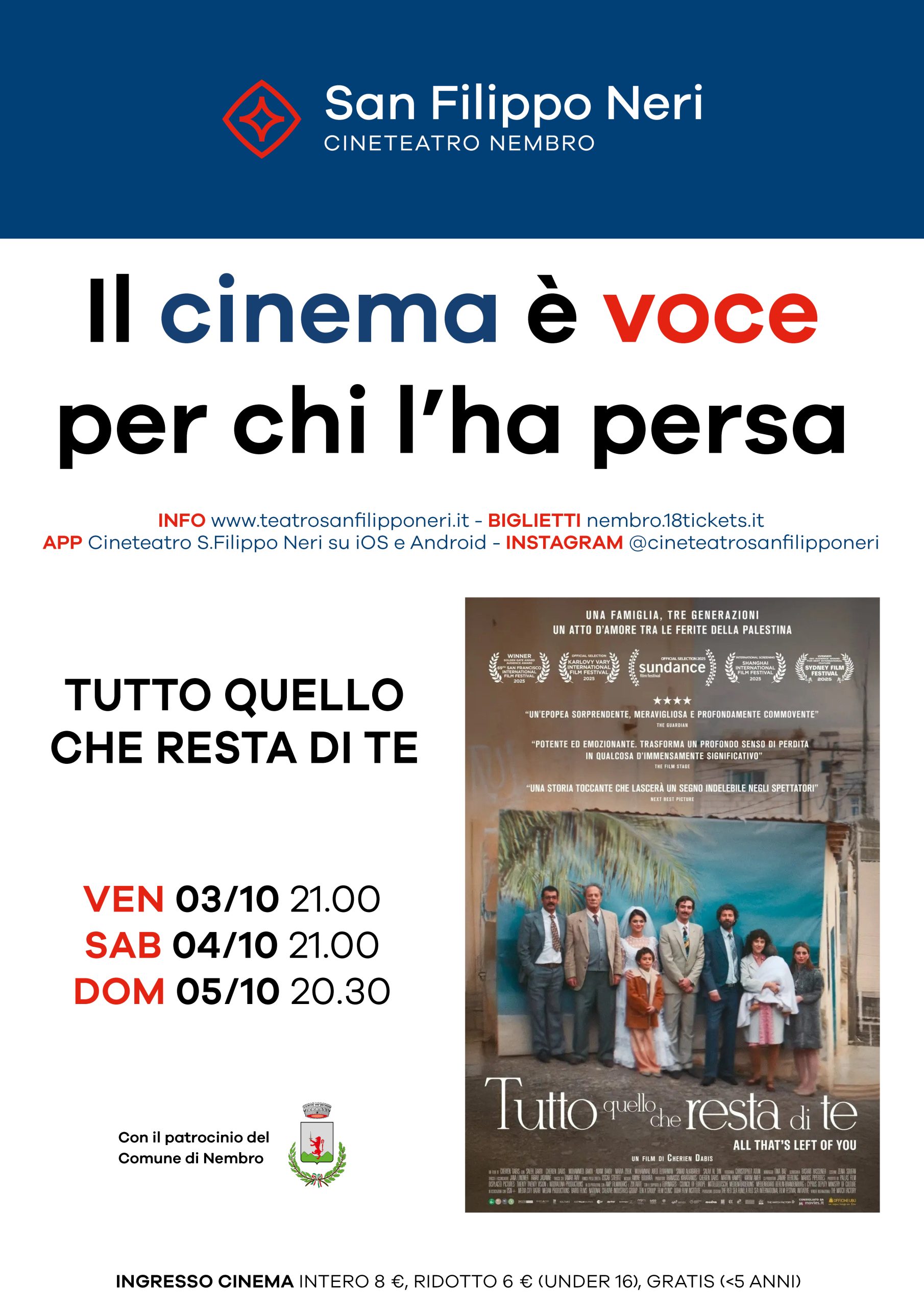 Ecco i film che sono attualmente in programmazione: Grand prixTutto quello che resta di te (all that’s left of you) Ecco i film che sono in programmazione per il cineforum: Nessun film attualmente in programmazione per il Cineforum.