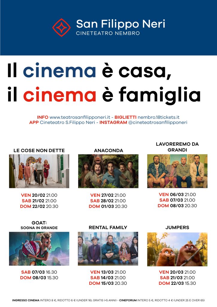 Ecco i film che sono attualmente in programmazione: Nessun film attualmente in programmazione. Ecco i film che sono in programmazione per il cineforum: Il maestroC’era una volta mia madreIl sentiero azzurroUn semplice incidente