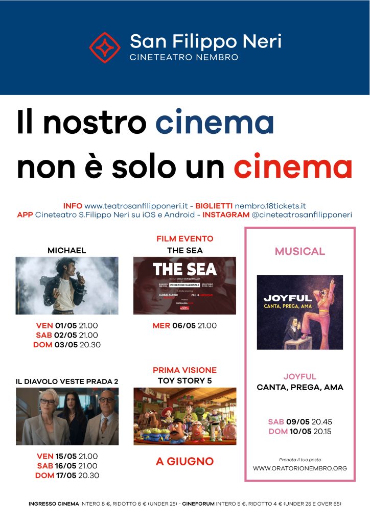 Ecco i film che sono attualmente in programmazione: MichaelIl diavolo veste prada 2 (the devil wears prada 2) Ecco i film che sono in programmazione per il cineforum: Sentimental valueLa mia famiglia a taipeiL’uomo che verràL’agente segreto